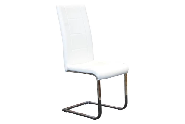 Moderná elegancia na chrómovo lesklej konštrukcii. Pohodlný sedák potiahnutý príjemne mäkkou ekokožou bielej farby.