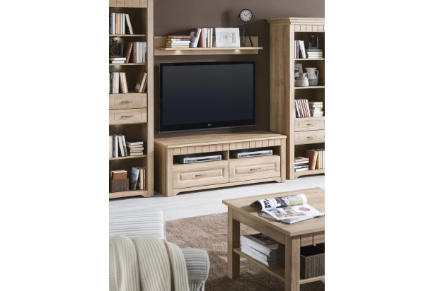 Nástenná polica so šírkou 107,5 cm je vyrobená v drevodekore dub riviera. Môžete ju využiť v obývačke, pracovni aj spálni.