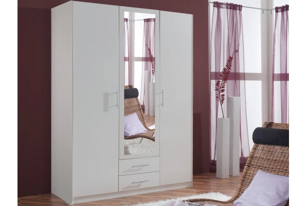 Šatníková skriňa so šírkou 135 cm av úplne univerzálnom štýle sa hodí do každej spálne či šatne. Skriňa v bielej farbe obsahuje 3 dvere, 1 zrkadlo a 2 zásuvky na ukladanie drobnej bielizne alebo doplnkov. Vnútorný priestor je možné navyše individuálne doplniť o ďalšie police a prispôsobiť si tak úložné miesta podľa potreby.