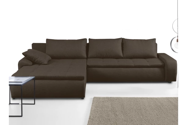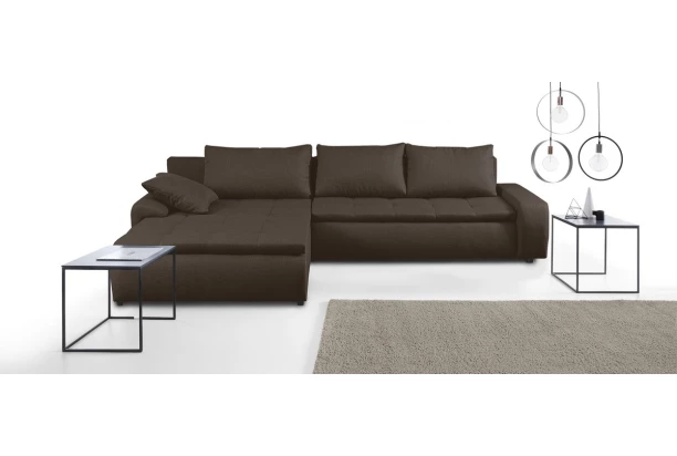Ležérna rohová sedacia súprava v obľúbenom trendovom dizajne je ideálna pre chvíle pohody. Zaoblené tvary sedačky dopĺňa priestranný otoman, rozkladacia funkcia na lôžko aj úložný priestor. Potiahnutá jemne štruktúrovanou látkou vo farbe hnedá.