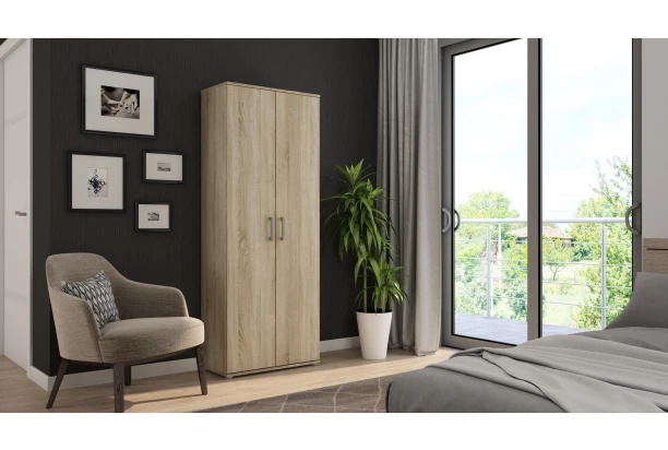 Univerzálna viacúčelová skriňa v dekore dub Sonoma môže byť využitá v akejkoľvek miestnosti. Členený vnútorný priestor s deliacou priečkou a policami pre prehľadné ukladanie vecí z vašej domácnosti.