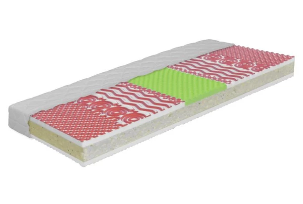 Komfortný matrac s lenivou penou a 3D Rainbow technológiou. Ložná plocha HARD (tuhšia strana matraca) má 7 zón s masážnou profiláciou s 3D Rainbow technológiou (pokročilá skladba a profilácie pien = podpora ortopedických vlastností, vzdušnosti a komfortu zároveň). Vyrobená je z odolných pien Flexifoam ® novej generácie. V bedrách vložený klin z komfortnej lenivej peny (peny s pamäťou). Stredová časť z RE peny dáva matracu prirodzenú tuhosť a odolnosť. Strana SOFT (mäkšia strana matraca – biela) sa vyznačuje jemnou masážnou profiláciou.