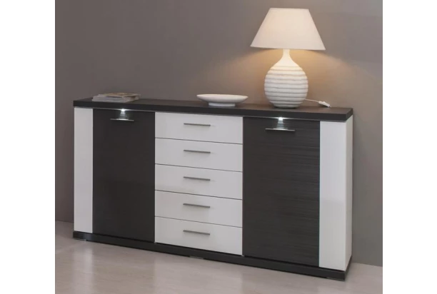 Široká komoda Caracas typ 21, grafit/biely lesk, s osvetlením