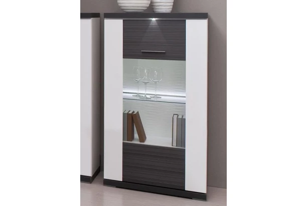 Vitrína Caracas typ 24, grafit/biely lesk, s osvetlením