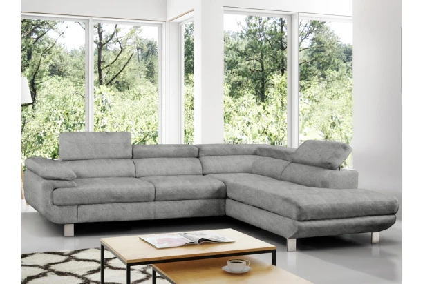 Rohová sedacia súprava Lotos v módnom dizajne as polohovateľnými opierkami pre vaše pohodlie. Sedačka s otomanom vytvára pravý roh a je očalúnená látkou s efektom brúsenej kože vo farbe svetlo šedá. Navyše vybavená rozkladacou funkciou a praktickým úložným priestorom vo svojej dolnej časti, čo ocení každá domácnosť.