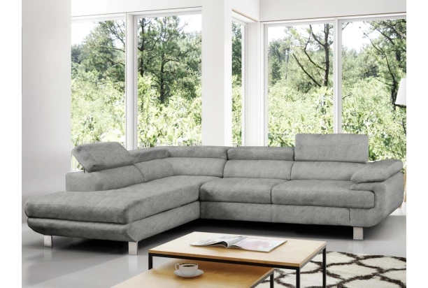 Rohová sedacia súprava Lotos v módnom dizajne a s polohovateľnými opierkami pre vaše pohodlie. Sedačka s otomanom vytvára ľavý roh a je očalúnená látkou s efektom brúsenej kože vo farbe svetlo šedá. Navyše vybavená rozkladacou funkciou a praktickým úložným priestorom vo svojej dolnej časti, čo ocení každá domácnosť.