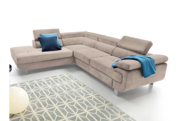 Rohová sedacia súprava Lotos v módnom dizajne a s polohovateľnými opierkami pre vaše pohodlie. Sedačka s otomanom vytvára ľavý roh a je očalúnená látkou s efektom brúsenej kože vo farbe béžová. Navyše vybavená rozkladacou funkciou a praktickým úložným priestorom vo svojej dolnej časti, čo ocení každá domácnosť.
