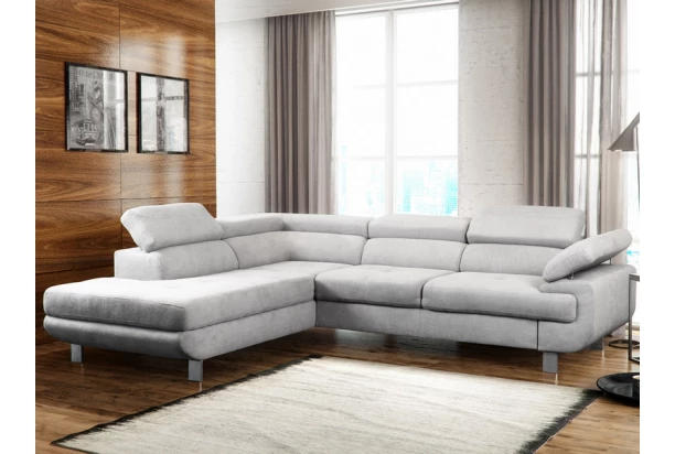 Rohová sedacia súprava Lotos v módnom dizajne a s polohovateľnými opierkami pre vaše pohodlie. Sedačka s otomanom vytvára ľavý roh a je očalúnená tkaninou vo farbe svetlo šedá. Navyše vybavená rozkladacou funkciou a praktickým úložným priestorom vo svojej dolnej časti, čo ocení každá domácnosť.