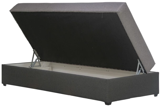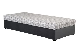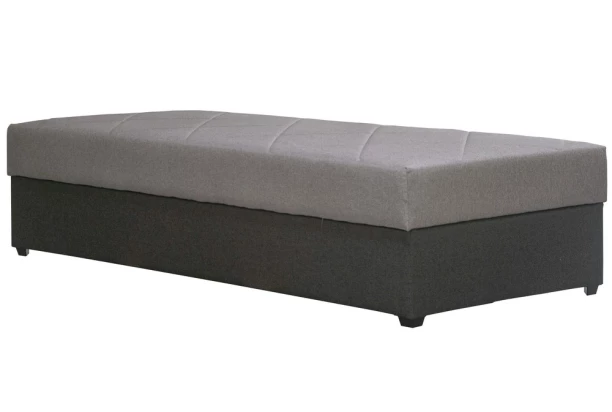 Kompletná jednolôžková posteľ (váľanda) s plochou lôžka 88×202 cm obsahuje zabudovaný rošt, matrac a praktický úložný priestor v dolnej časti. Potiahnutá kombináciou sivo-hnedá/tmavo šedá látka.
