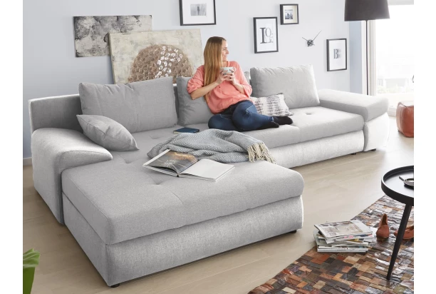 Komfortná rohová sedacia súprava v zaoblených tvaroch pre každý moderný interiér. Očalúnená odolnou látkou vo farbe svetlo šedá. U sedačky oceníte nielen jej pohodlie, úložný priestor a funkciu rozkladu, ale aj možnosť univerzálneho zostavenia ako pravý alebo ľavý roh. Otoman sedačky tak môže byť umiestnený na pravú alebo ľavú stranu – ľahko podľa vašej potreby.