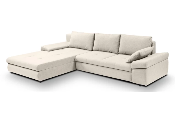 Komfortná rohová sedacia súprava v zaoblených tvaroch pre každý moderný interiér. Očalúnená mäkko štruktúrovanou látkou vo farbe svetlo béžová. U sedačky oceníte nielen jej pohodlie, úložný priestor a funkciu rozkladu, ale aj možnosť univerzálneho zostavenia ako pravý alebo ľavý roh. Otoman sedačky tak môže byť umiestnený na pravú alebo ľavú stranu – ľahko podľa vašej potreby.