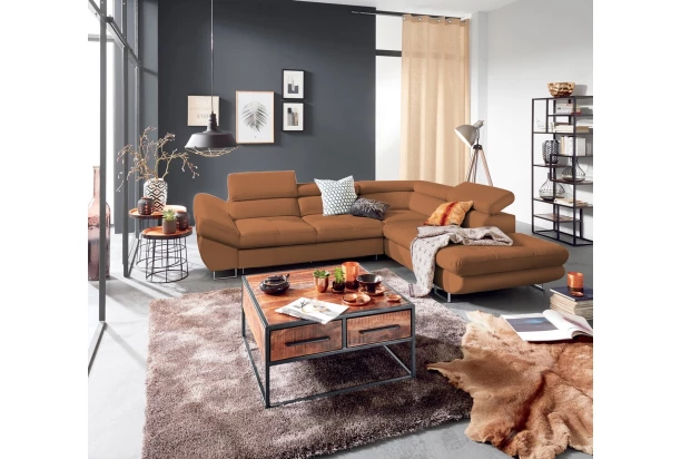 Rohová sedacia súprava Fabio s otomanom umiestneným na pravej strane je ideálnym spojením moderného dizajnu a pohodlného štýlu sedenia. Očalúnená príjemne mäkkou látkou vo farbe hrdzavá. Vrátane polohovania opierok, úložného priestoru aj rozkladacej funkcie.