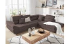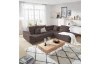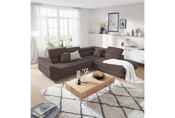 Rohová sedacia súprava Fabio s otomanom umiestneným na pravej strane je ideálnym spojením moderného dizajnu a pohodlného štýlu sedenia. Očalúnená príjemne mäkkou látkou vo farbe hnedá espresso. Vrátane polohovania opierok, úložného priestoru aj rozkladacej funkcie.