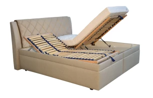 - 1 x lamelový rošt (drevený rám, 28 lamiel, nastaviteľná tuhosť bedrovej časti, stredový popruh proti preťaženiu, dvojité vrecká, funkcia polohovania hlavovej časti – na relaxáciu/sledovanie televízie, funkcia polohovania časti pri nohách, výklopná funkcia, nosnosť do 130 kg)