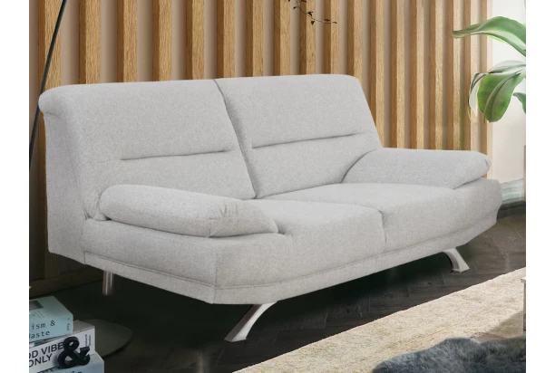 Elegantný dvojsedák so zaoblenými tvarmi podrúčiek ponúka príjemne mäkký komfort sedenia. Dvojmiestna pohovka na chrómovo lesklých nohách je očalúnená jemne štruktúrovanou tkaninou vo farbe svetlý šedo-biely melír. Pohovku je možné navyše rozšíriť o ďalšie elementy a zostaviť si tak celú sedaciu súpravu.