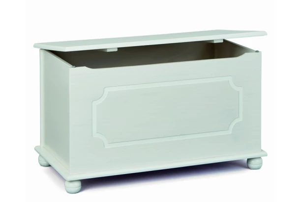 Praktická úložná truhlica s výklopným vekom v obľúbenom vidieckom štýle je vyrobená z bieleného borovicového dreva. Dekoratívne bočné prelisy a tvarované nohy dokonale dotvárajú štýlovú atmosféru domova.