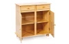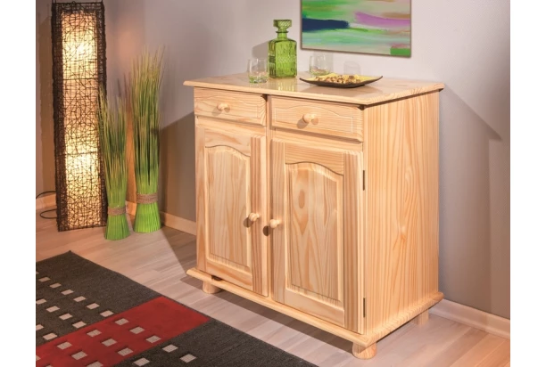 Komoda v obľúbenom vidieckom štýle je vyrobená z prirodzeného borovicového dreva. Dekoratívne prelisy dverí, tvarované úchyty a masívne nohy dokonale dotvára útulnú atmosféru domova.