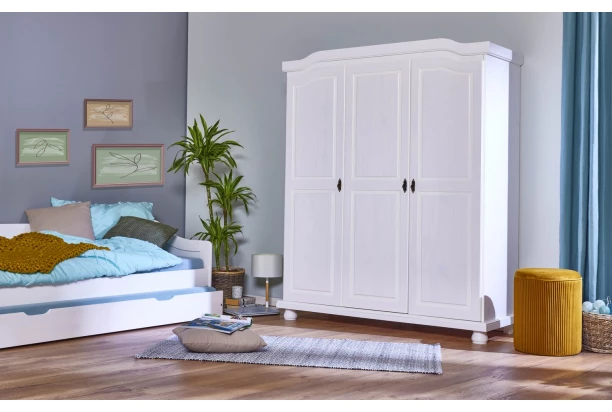 Šatníková skriňa Bastian, bielená borovica