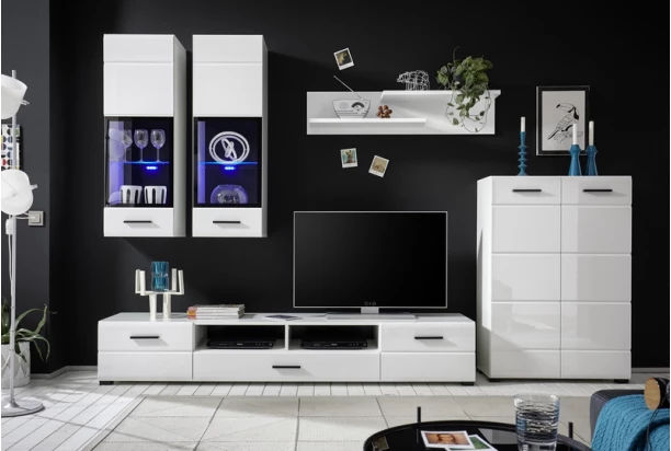 | Zaradenie produktu | kompozitné drevo Lesk Moderný S osvetlením Biela Obývacia izba Demont |