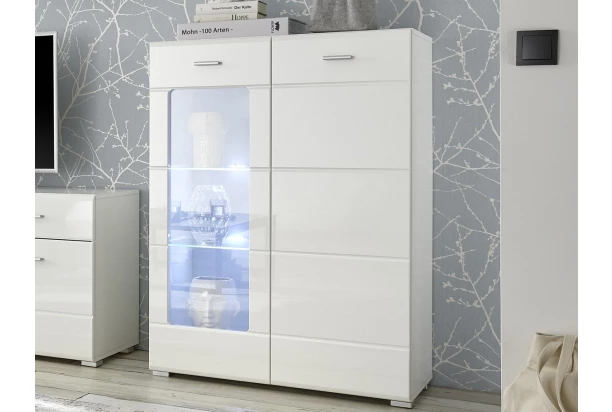 Skrinka s presklením v prevedení lesklá biela má univerzálny štýl a môžete ju ľubovoľne kombinovať s akýmikoľvek farbami a dekoráciami vo vašom interiéri. Vnútorné police navyše dopĺňa osvetlenie.