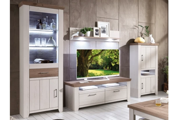 Kvalitná obývacia stena v očarujúcom vidieckom štýle vytvorí útulnú domácu klímu a zaujme skvelým prepracovaním tvarov.