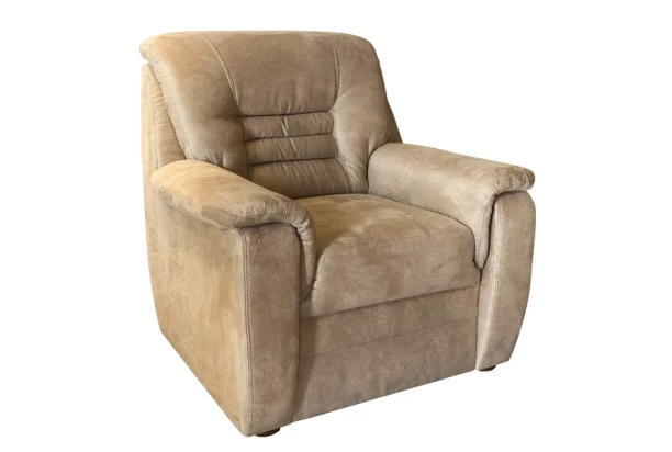Kreslo v elegantnom štýle má komfortne tvarované operadlo, ktoré poskytuje kvalitnú oporu pri sedení. Potiahnuté béžovou látkou so zaujímavým efektom štruktúry kože. Výrazný prešiv poťahu zvýrazňuje tvary.