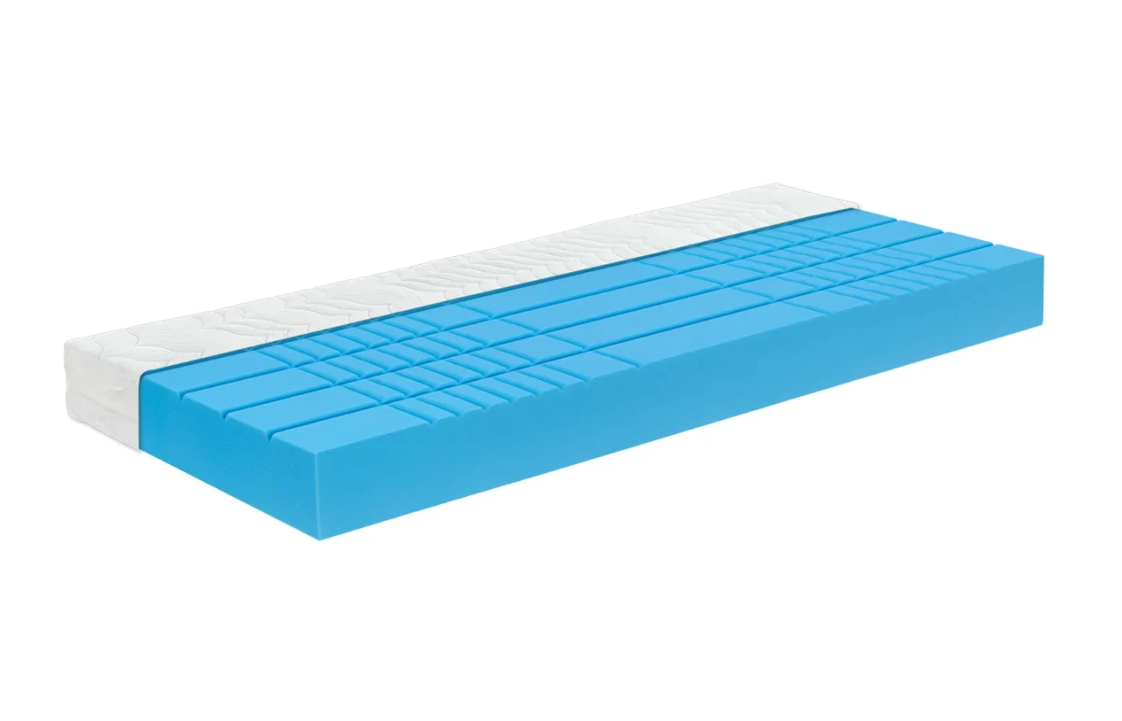 Robustný a tuhý matrac z pružnej vzdušnej peny Flexifoam® Blue Comfort. Obojstranný – možnosť voľby profilovanej strany alebo pevnejšej neprofilovanej strany. Vybavená prateľným poťahom s klimatizačným prešitím, ktorý pomáha odvádzať pot a dodáva lôžku tepelnú izoláciu – ideálny aj pre alergikov.