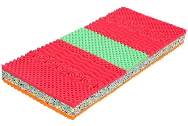 - červeno-zelená strana SOFT: stredná tuhosť strany, kombinácia červená pena Flexifoam® a zelená pamäťová (visco) pena, masážna profilácia so 7 zónami – pokročilá skladba a profilácie pien zvyšujúce komfort, vzdušnosť a podporujúce ortopedické vlastnosti, v bedrovej oblasti vložený klin z pamäťovej visco peny – extra starostlivosť o bedrové kĺby, stupeň tuhosti: 2,5 (stupnica tuhosti: 1 mäkká – 5 tuhá)