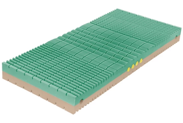 Obojstranný sendvičový ortopedický matrac z pružných pien je vybavená zdravotné CubeCare profiláciou, ktorá optimalizuje tuhosti v jednotlivých zónach, poskytuje uvoľnenie ramien a spevnenie v oblasti panvy. Voľba tuhosti jednoduchým otočením a pružné pohodlie vďaka 7 anatomickým zónam.