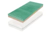 - zelená strana HARD: vyššia stredná tuhosť strany, zelená pena Flexifoam®, zdravotné profilácia CubeCare – navrhnutá pre zdravotné matrace, optimalizuje tuhosti v jednotlivých zónach, zaisťuje uvoľnenie ramien a spevnenie v oblasti panvy, stupeň tuhosti: 3,5 (stupnica tuhosti: 1 mäkká – 5 tuhá)