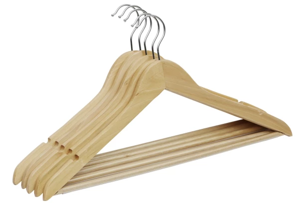 Sada 5 kusov klasických vešiakov na oblečenie. Drevená konštrukcia v prírodnej farbe.