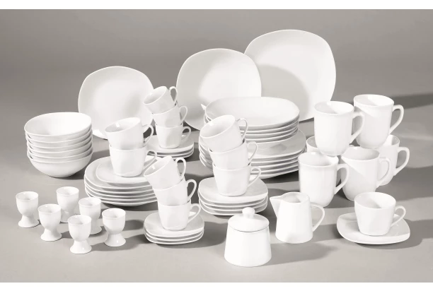 62-dielny jedálenský servis až pre 6 osôb je vyrobený z vysoko kvalitného porcelánu. Čisto biela farba je univerzálna a zaručuje elegantnú jednoduchosť.