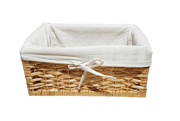 Úložný košík z prírodného vŕbového prútia s rozmerom 38×16×28 cm so šedou látkou. Košík bude nielen vynikajúci pre ukladanie vecí, ale stane sa aj krásnou ozdobou Vášho interiéru.