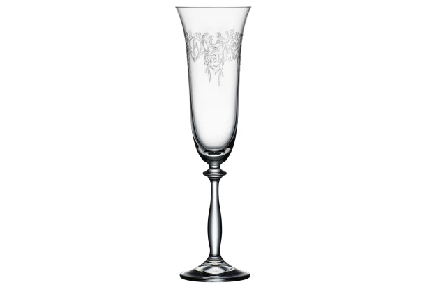 Pohár na šampanské s objemom 190 ml zo série Romance s gravírovanými ornamentami, vytvára jedinečnú slávnostnú atmosféru.