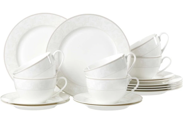 18-dielny kávový servis z kolekcie Isabella s jemným kvetinovým dekorom vytvárajúci mierny 3D efekt je perfektný pre slávnostné príležitosti. Jedálenská sada z krémovo bieleho porcelánu s ľahkými béžovými akcentmi pôsobí elegantne a skrášli každý stôl.