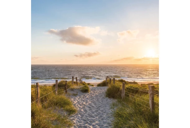 Štvorcový obraz na stenu o rozmeroch 35×35 cm s motívom pláže poskytne príjemný morský vánok do každej domácnosti. Do interiéru tiež vnesie upokojujúcu atmosféru a pohodu.