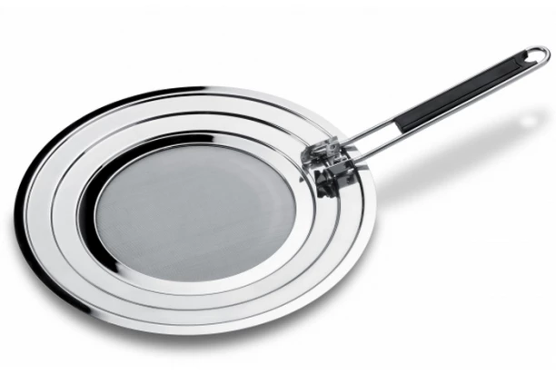 Praktické ochranné sito proti striekajúcemu tuku pri smažení je nepostrádateľným pomocníkom v každej kuchyni. Vďaka jemnému nerezovému sitku nestrieka z panvice žiadny olej alebo šťava a zároveň para môže voľne unikať. Pripravované jedlo tak bude správne chrumkavé a okolie sporáka zostane čisté.