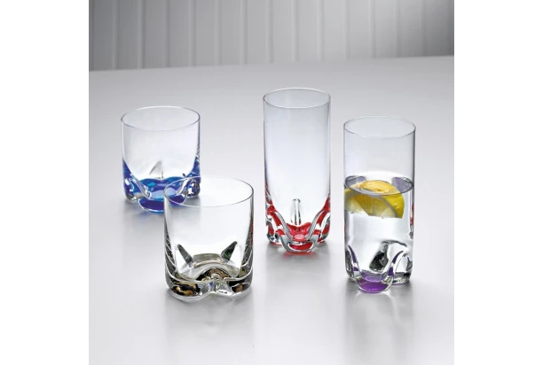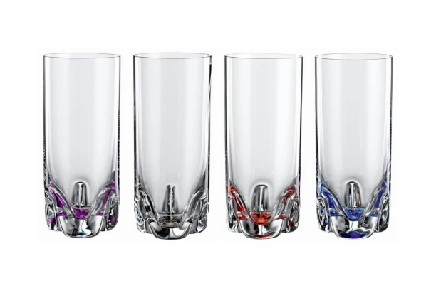 Sada 4 ks pohárov na vodu v unikátnom farebnom prevedení z kvalitného skla s objemom 300 ml.