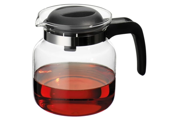 Sklenená kanvica SIMAX na teplé aj studené nápoje, ale predovšetkým na čaj s objemom 1 l s pevnou plastovou rukoväťou.