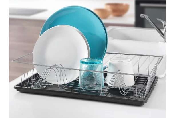 Odkvapkávač na riad s praktickým podnosom na odtekanie vody udrží Vašu kuchynskú linku v suchu a zároveň jej dodá moderný vzhľad vďaka štýlovému dizajnu. Elegantná kombinácia striebornej a antracitovej farby sa ľahko zladí s každým interiérom.