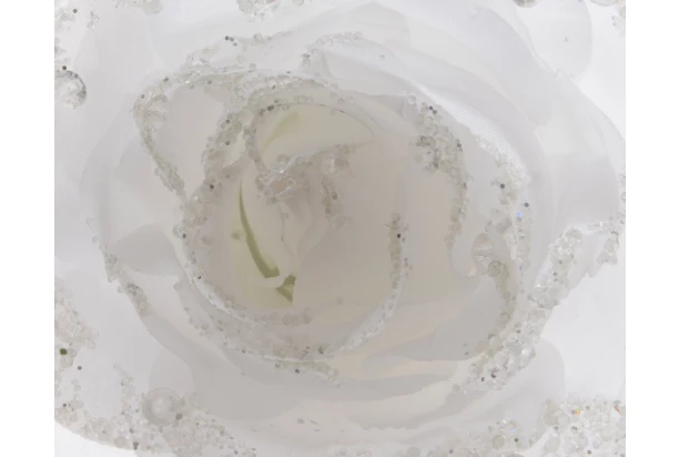 Vianočná ozdoba Kvet ruže, biela s trblietkami