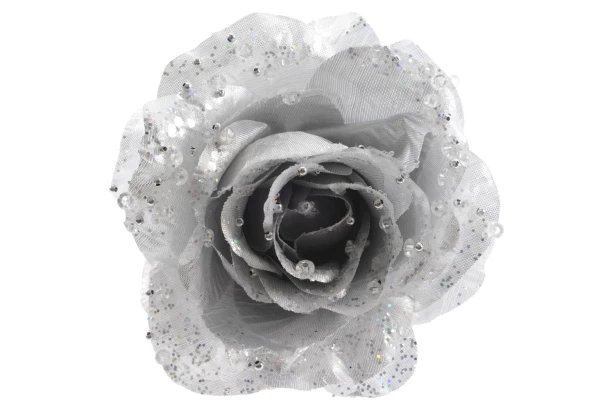 Vianočná ozdoba Kvet ruže, strieborná s trblietkami