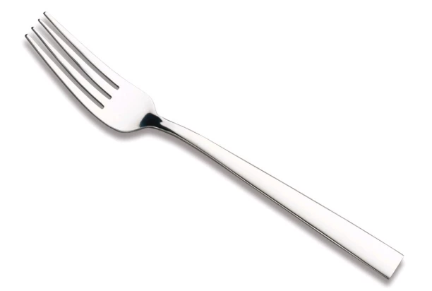 Príborová vidlička z leštenej nerezovej ocele, univerzálna pre akúkoľvek jedáleň.