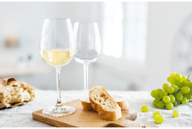 Pohár na biele víno Simply z číreho vysoko kvalitného odolného skla s objemom 340 ml s krásnym opracovaným kalíškom a hladkým okrajom na tenkej stopke.