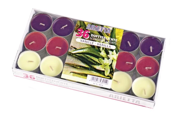 - sada obsahuje: 36 ks vonných čajových sviečok