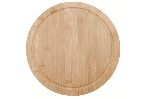 Okrúhla kuchynska doštička je vyrobená z kvalitného bambusového dreva, ktoré sa vyznačuje odolnosťou a ľahkou údržbou. Možno ju tiež použiť, ako podnos pre servírovanie občerstvenia alebo ako podtácku na teplé jedlá. Priemer 25 cm.