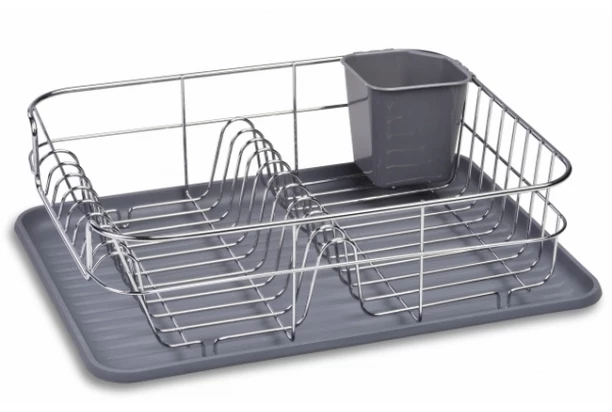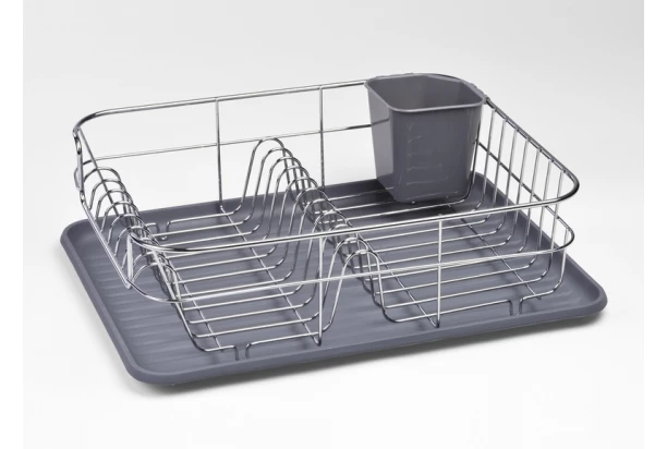 Kuchynský odkvapávač na riad z kolekcie Lifestyle má stabilnú konštrukciu z chrómovaného kovu. Obsahuje navyše plastovú nádobku na príbory, ktorá oddeľuje drobné príbory od hrncov a tanierov. Vrátane praktického podnosu na odkvapkávanie.