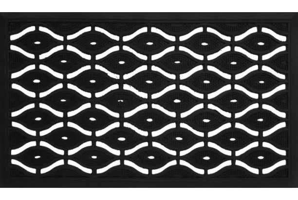 Praktická gumová rohožka o rozmere 45×75 cm so vzorom pripomínajúcim rady očí slúži na odstránenie hrubých nečistôt a vlhkosti z obuvi. Vhodná na vonkajšie použitie pred vstupom dovnútra.