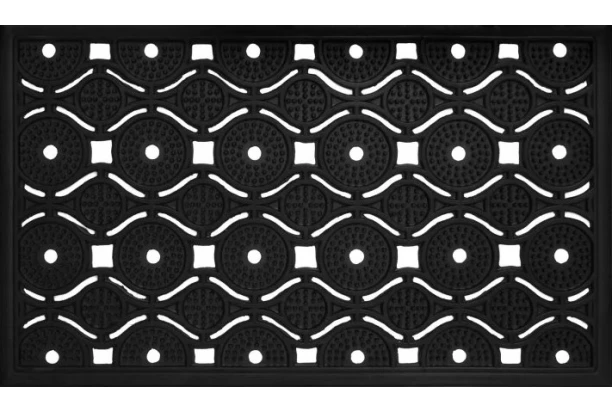 Praktická gumová rohožka o rozmere 45×75 cm so vzorom koliesok slúži pre odstránenie hrubých nečistôt a vlhkosti z obuvi. Vhodná pre vonkajšie použitie pred vstupom dovnútra.