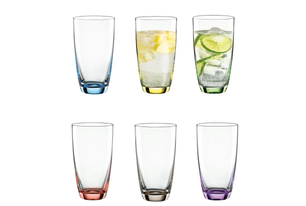 Sada 6 farebných pohárov Viva Colori z kvalitného tenkostenného skla s objemom 350 ml.